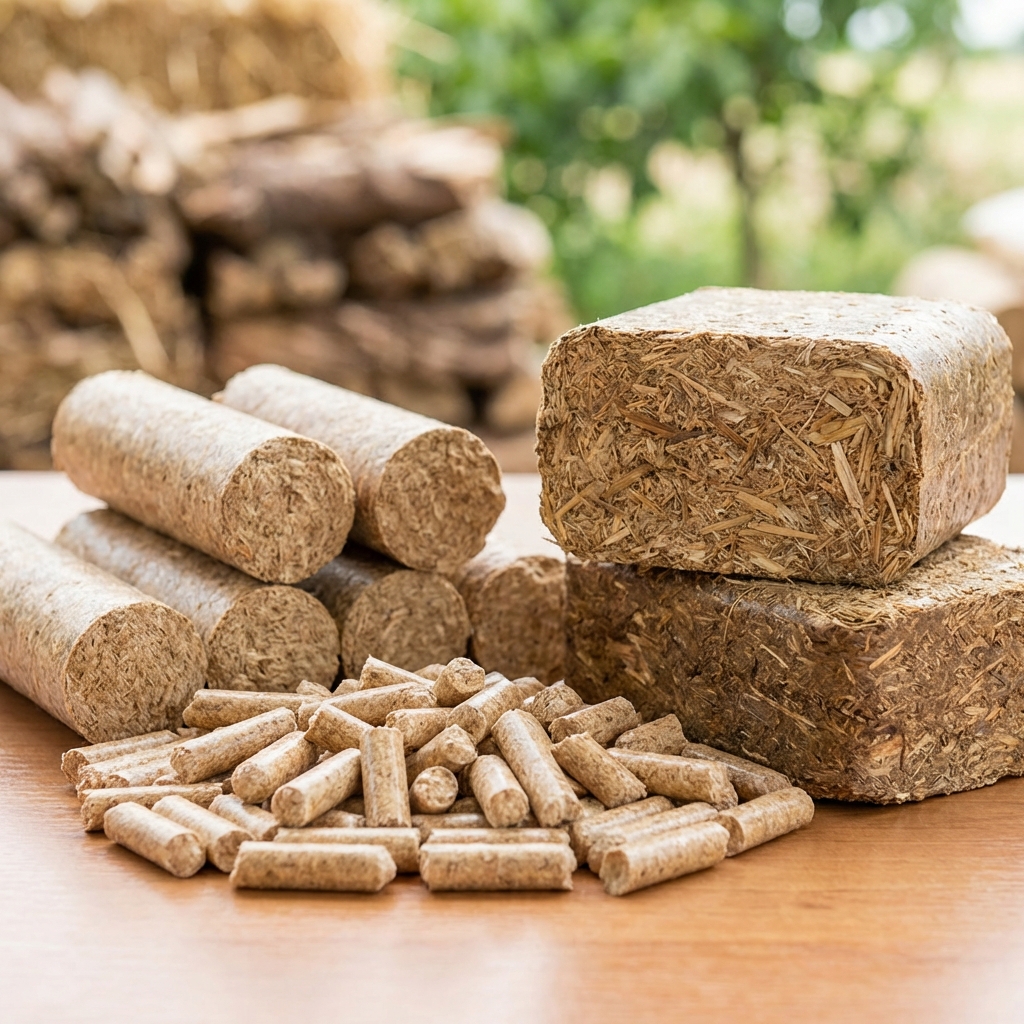 High-calorific biofuel pellets replace coal in industrial boilers, reducing emissions by up to 80%.