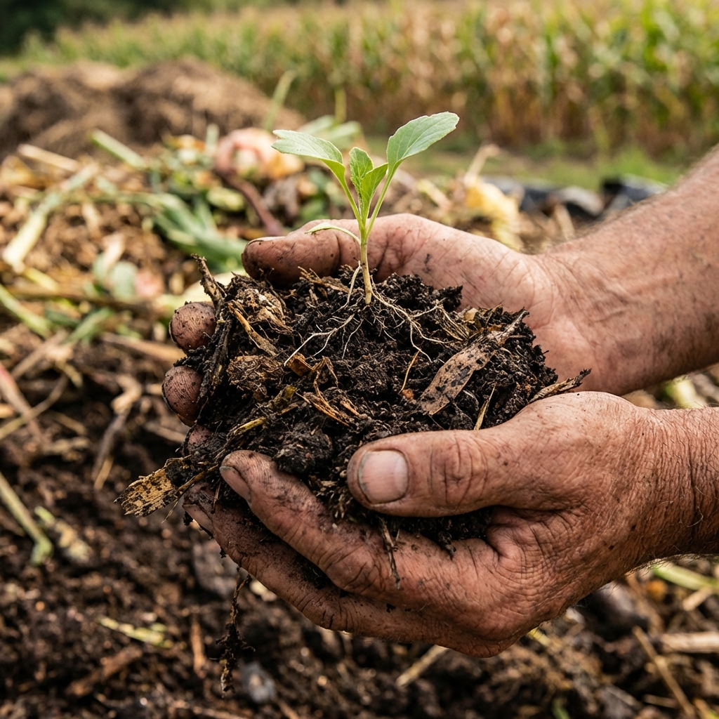 Premium organic compost returned to the soil, completing the nutrient cycle for future crops.